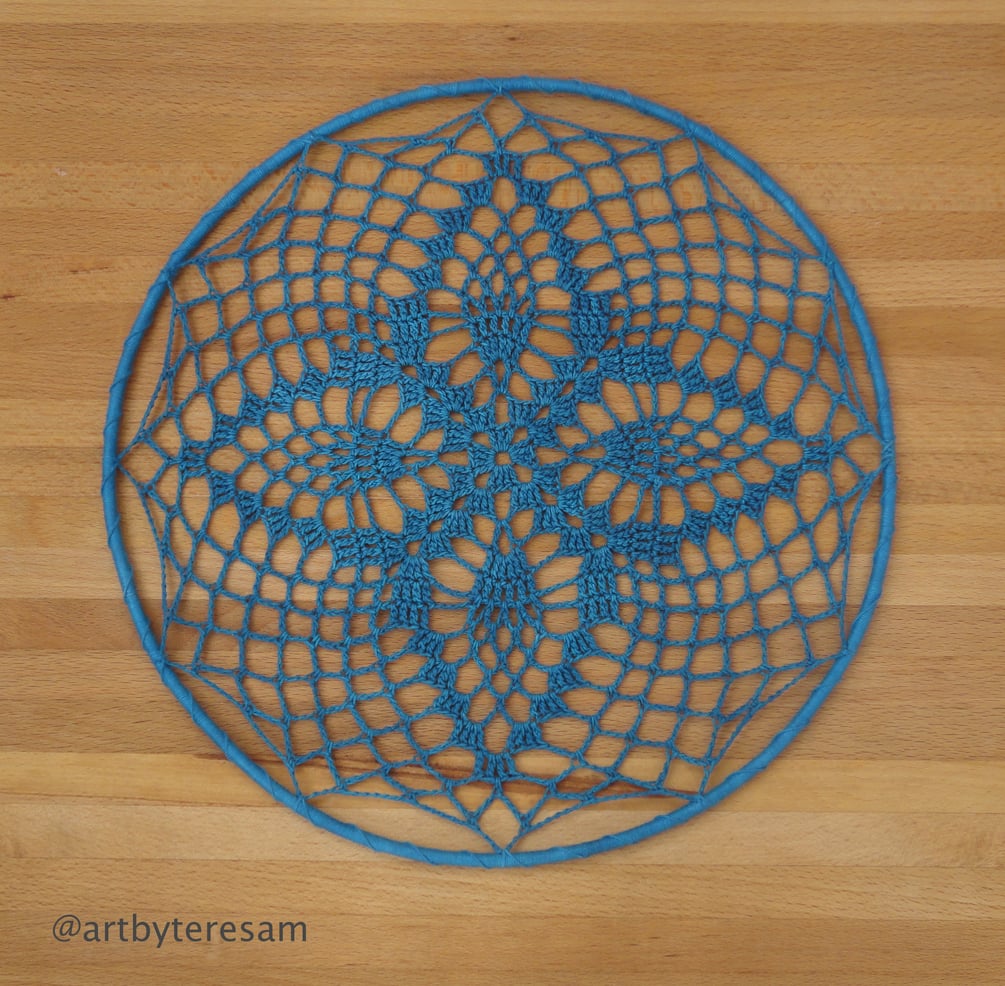 Mandala em fio de algodão, protegida com uma camada endurecedora Diâmetro: 32 cm
